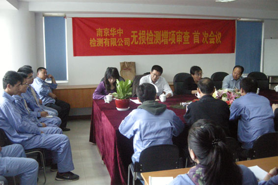 2011年10月22-23日,中国特种设备检验协会实地审查组一行2人在南京市质量技术监督局领导的陪同下,南京华中检测有限公司涡流检测许可证增项进行现场核查。经过两天的紧张工作,审查组组长在末次会议上宣布,南京华中检测有限公司涡流检测许可证增项现场核查通过。